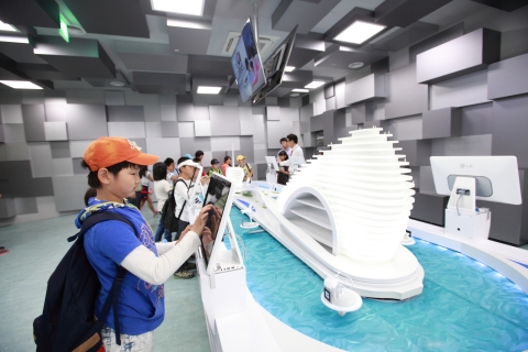 LG관은 미래 그린기술과의 만남과 함께 친환경 휴식 공간, 각종 이벤트 등으로 관람객들을 불러모으고 있다.