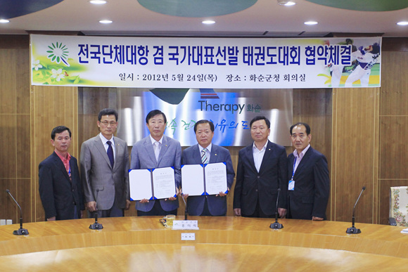 화순군(군수 홍이식)은 지난 24일 군청 소회의실에서 대한태권도협회와 제42회 대한태권도협회장기 겸 2013년도 국가대표 선수선발 예선대회 협약을 체결했다.