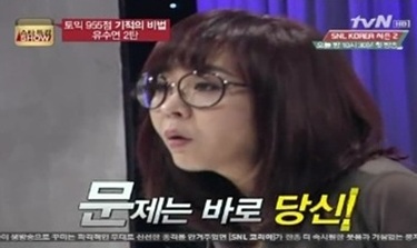 유수연이 지난 26일 방송된 tvN '스타특강쇼'에 2번째로 출연해 토익 고득점 노하우를 공개했다. 특히 유수연은 LC파트 고득점 노하우를 설명하다가 "니가 소야? 왜 자꾸 되씹어"라고 목소리를 높였다. 간단한 영어 대화를 할 때에도 습관적으로 질문을 되풀이하는 것을 꼬집은 것이다.