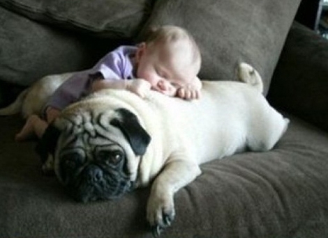 사진 속에는 개와 고양이 들이 아기를 감싸거나 베개 역할을 하는 모습이 담겨 있다.
