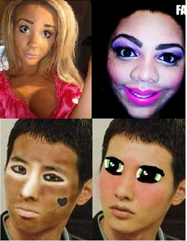 한편 최근 미국 엔터테인먼트 블로그 오디닷컴(Oddee.com)은 ‘세계 최악의 화장법’의 사진들을 여러 장 게재했다. 사진 속 여성들은 저마다 특이한 화장법으로 부자연스로운 모습을 하고 있다.(사진-오디닷컴, 온라인커뮤니티)