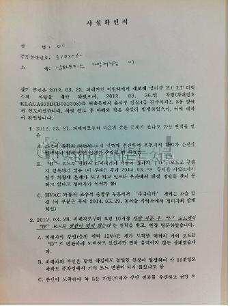 ▲ 이 씨가 GM 영업사원에게서 받은 차량결함 사실 확인서