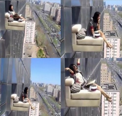 특히 고층빌딩 밑으로 아득하게 땅이 보이는데에도 불구 너무나 편안한 표정을 짓고 있어 누리꾼들을 절로 경악케 만들고 있다.