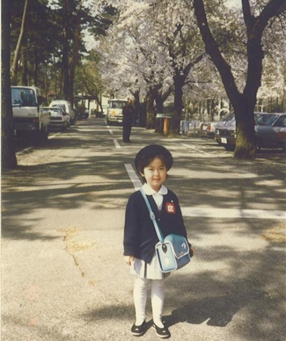슈는 유치원 복을 입고 벚꽃을 배경으로 사진을 찍고 있어 눈길을 끈다.