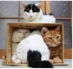 사진 속 에는 종이 박스 안에 앉아 있는 고양이 모습이 담겨있다. 주변의 다른 고양이 한마리가 박스 주변을 얼쩡거리더니 박스 안으로 들어갔다. 이어 다른 세번째 고양이가 다가와 이 녀석도 박스 속 좁은 공간을 비집고 들어간다. 마침내 장소가 좁아져 안에 있던 고양이 표정이 웃음을 자아낸다.