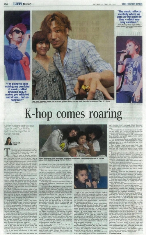 지난 5월31일 발행된 싱가포르 최대 일간지 '더 스트레이츠 타임즈'는 타이거 JK와 윤미래의 음악적 일대기와 한국 가요계에 끼친 영향, 세계적인 인지도 등을 상세히 보도했다.