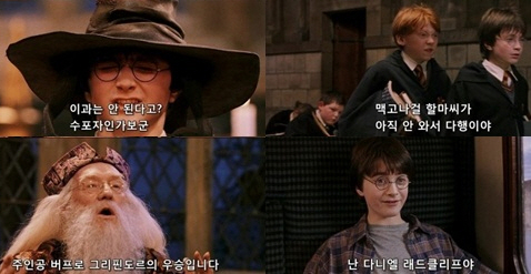 일명 ‘해리포터 실명제’란 사진은 인기 영화 ‘해리포터’ 시리즈를 패러디 한 것이다. 영화 속 한글 자막에 주인공 해리포터, 헤르미온느, 론 등 극중 인물이 아닌 실제 배우들의 이름인 대니얼 레드클리프, 루퍼트 그랜트, 엠마 왓슨 등을 실명으로 적어 넣은 것이어서 네티즌들의 폭소를 유발시키고 있다.