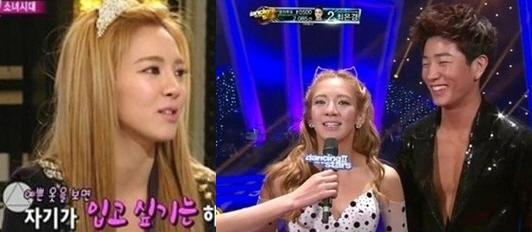 지난 1일 방송된 MBC '댄싱 위드 더 스타 2'에서 효연은 검정색 점박이 무늬로 된 스포츠 댄스 의상을 입었다. 효연은 비키니 스타일의 의상으로 허리를 아찔하게 노출하는 한편 글래머러스한 가슴골을 드러내며 유연하고 화려한 춤실력을 뽐냈다.
