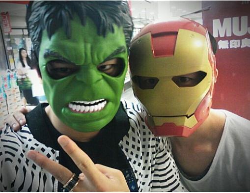 공개된 사진에는 서인국이 친구와 함께 헐크 가면과 아이언맨 가면을 쓰고 있다.