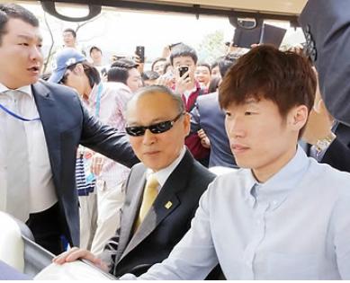 이어 전광판에 박지성의 모습이 비춰지자 관객들은 환호성을 질렀다.