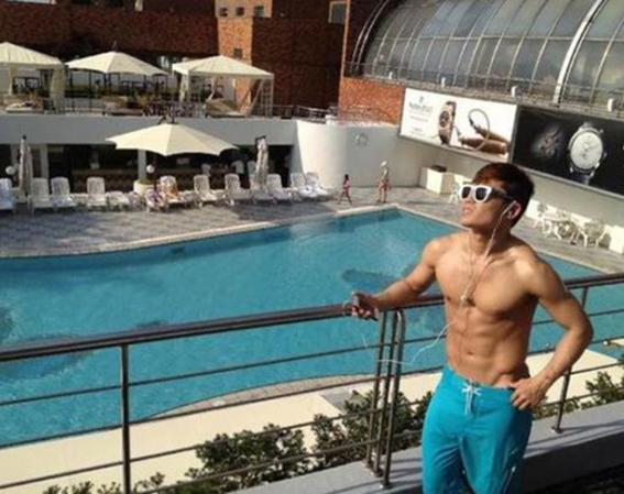 김범수 근육에 누리꾼들은 "김범수 근육 멋지네", "근육남이었네요", "수영장에서 폼잡고 계시네요"등의 다양한 반응을 보였다. (사진-김범수 트위터)