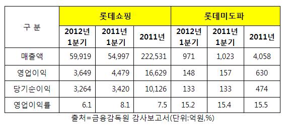 롯데미도파의 경우 1분기 실적이 다소 둔화됐지만 모기업인 롯데쇼핑에 비해서는 크게 선방했다.