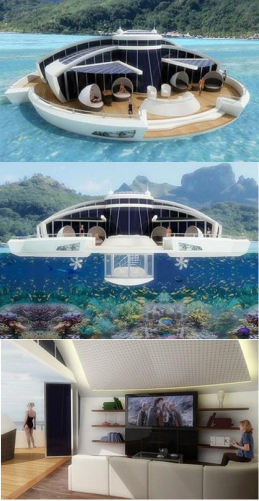 이 태양열 인공섬은 33평의 규모에 침실과 거실, 부엌, 화장실이 구비돼 있으며 수면 아래로는 전면 유리에 360도 관찰 카메라로 바다 속을 관찰할 수도 있다.