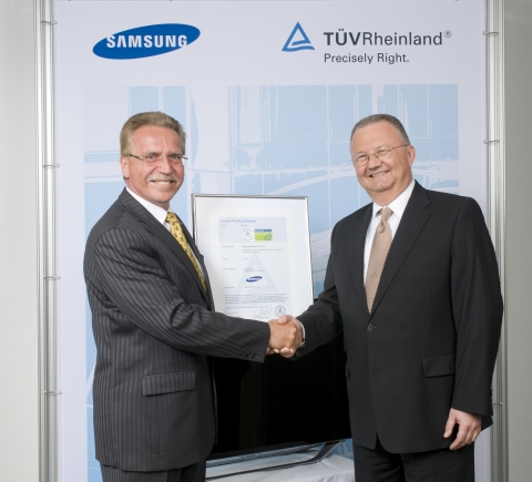 5일 삼성전자에 따르면 140년 역사의 유럽 인증기관인 독일의 ‘티유브이 라인란드’는 지난 30일 삼성 스마트TV 55인치 ES8000에 ‘그린 마크’를 수여했다.