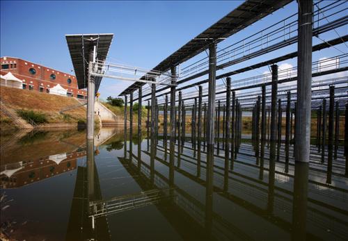 여기에 배수펌프장이라는 특수한 입지조건을 고려하여 수면 위에 태양광 모듈을 설치함으로써 열로 인한 손실을 최소화해 발전효율을 극대화 할 수 있게 됐다.