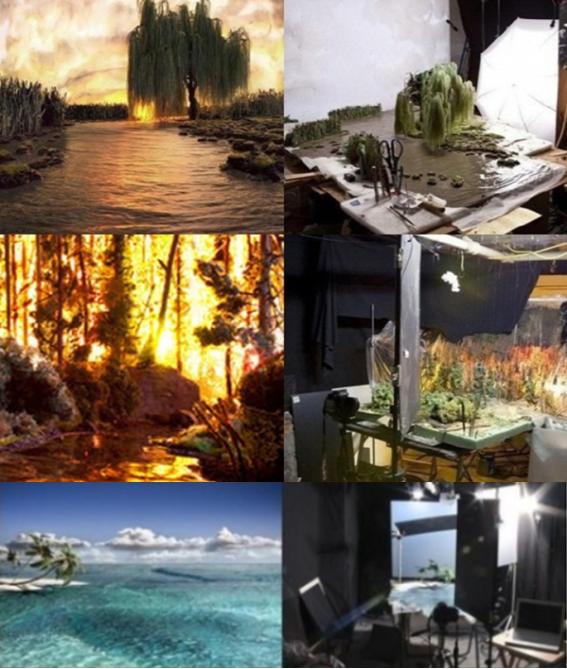 이들 아름다운 자연을 담은 듯한 바탕화면은 실제로 스튜디오의 모형과 조명으로 만든 사진이다.