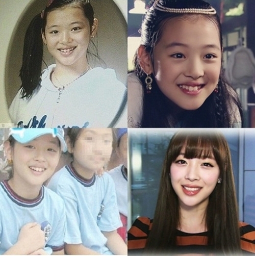 공개된 사진 속 설리는 치아교정을 하기 전 어린 모습으로 현재와 다름없는 뽀얀 피부와 귀여운 이목구비를 뽐내면서 '모태미녀'임을 입증했다.