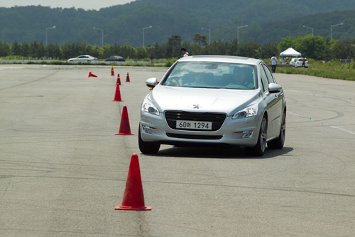508과 RCZ로 경험한 슬라럼을 통해서도 차체 밸런스와 즉각적인 스티어링 응답성을 확인할 수 있었다. 슬라럼은 파일런은 18m 간격으로 나란히 펼쳐 놓고 모터스포츠 선수들이 그 사이를 지그재그 방식으로 통과하는 연습방법 중 하나다.