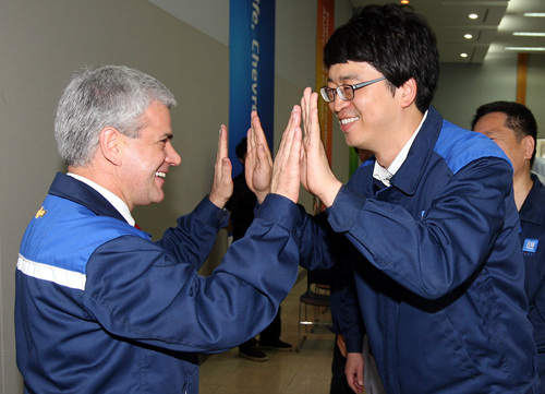 세르지오 호샤 한국지엠 사장이 소통경영에 한창이다.