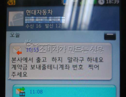 ▲ 차량 인수 예정일 며칠 전 오 씨가 영업사원으로 부터 받은 문자메세지.