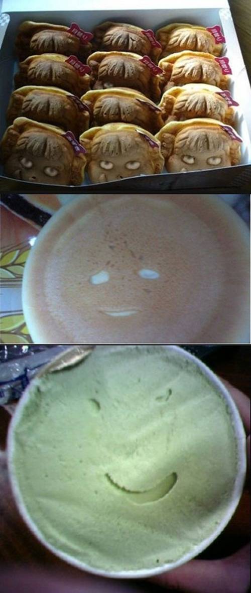 공개된 사진은 쉽게 접할 수 있는 빵, 아이스크림 등 먹을거리의 모습이 담겨 있는 가운데 해당 음식에 사람의 얼굴 표정이 나타나 눈길을 끌고 있다.