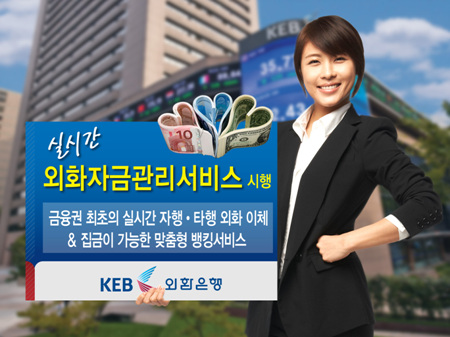 '실시간 외화자금관리서비스'는 다수의 은행 앞 외화계좌를 보유하고 있는 기업고객이 계좌 보유은행의 인터넷서비스에 직접 접속해 거래하지 않고도 동 서비스를 이용해 여러 은행에 보유하고 있는 계좌에서 출금해 외환은행 또는 타행 앞 외화이체를 하거나, 외환은행 외화계좌 앞 집금할 수 있는 기능을 제공한다.