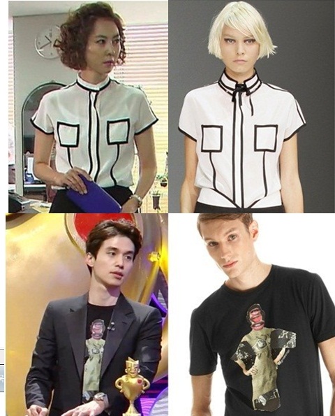 김남주의 의상은 엠포리오 아르마니 컬렉션에서 선보였던 의상으로 금발의 외국인 모델이 같은 의상을 입고 다른 느낌을 발산하고 있다.