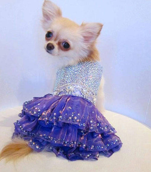 사진 속 강아지는 4천여개의 크리스탈이 박힌 드레스를 입고 있어 눈길을 끈다. 이 드레스는 현재 미국의 한 인터넷 쇼핑몰을 통해 실제로 판매 중인 제품이다.