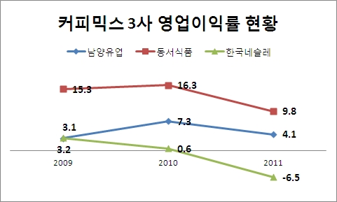 네슬레는 지난해 커피믹스 시장에 진출한지 겨우 6개월 밖에 안된 남양유업에 추월 당해 3인자로 전락하더니 올들어서도 시장점유율이 계속 하락하고 있다.