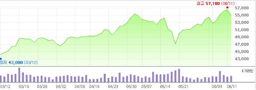 6월 들어서 연일 최고가 경신으로 6만원 돌파를 눈앞에 두기도 했지만 이날 코스피 지수가 약세를 보이며 호텔신라의 질주를 막았다.