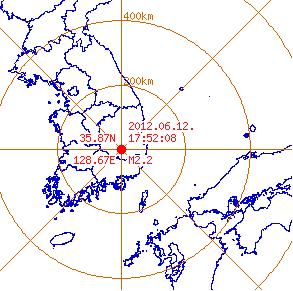 12일 오후 5시52분께 대구 수성구 동북동쪽 4㎞ 해역에서 규모 2.2의 지진이 발생했다.