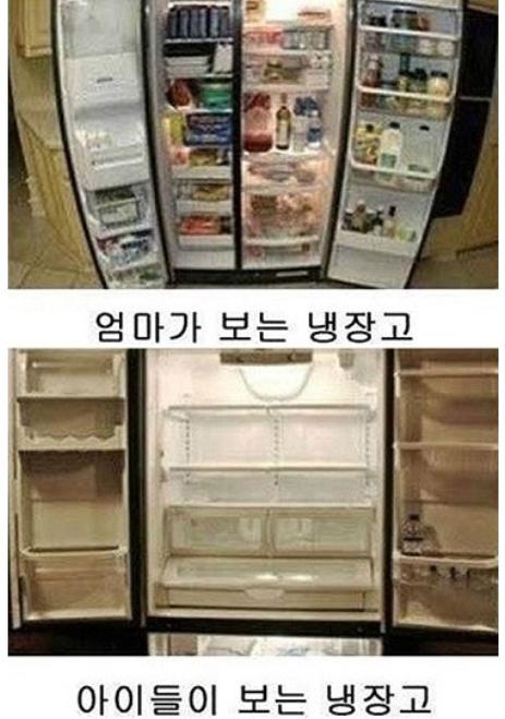 이는 엄마가 볼 때는 각종 음식 재료들이 많이 있는 냉장고지만 아들은 자신이 먹을 것이 없어 텅 빈 것으로 보인다는 것이다.
