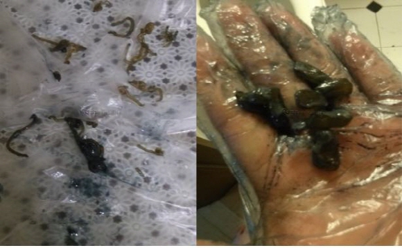 깜짝 놀라 염색약 통을 열어보니 딱딱한 알갱이 6~7개와 당면 같은 이물질이 담겨 있었다.