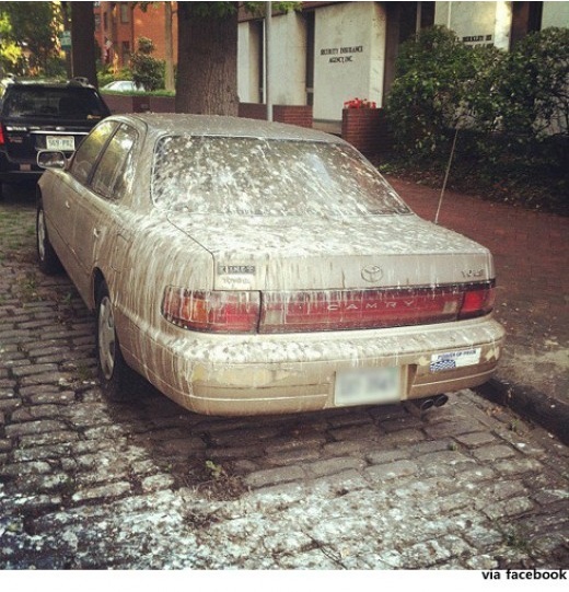 이번에 공개된 '진정한 앵그리버드' 사진에는 담벼락의 세워진 승용차가 새들의 수많은 배설물로 완전히 뒤덮힌 충격적인 모습이 담겨있다.