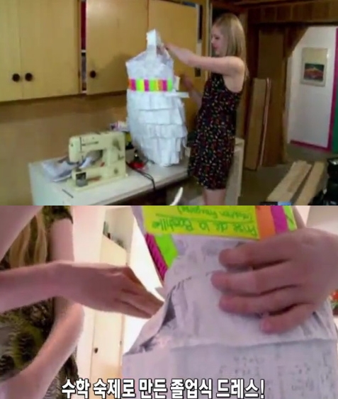 졸업을 앞둔 17세 소녀 캐라 코스코위치는 졸업식 파티 드레스에 수학 숙제로 만든 종이 드레스를 만들어 화제를 모았다.