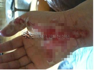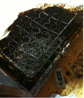 기겁한 정 씨는 놀라 남편을 깨운 뒤 다급히 매트의 전원을 뽑고 불을 끄기 시작했다. 매트리스까지 번진 불길은 쉽게 진압되지 않아 온 방안에 물을 끼얹은 한참 후에야 겨우 수습이 가능했지만 그 과정에서 정 씨는 오른손에 2도 화상을 입었다.