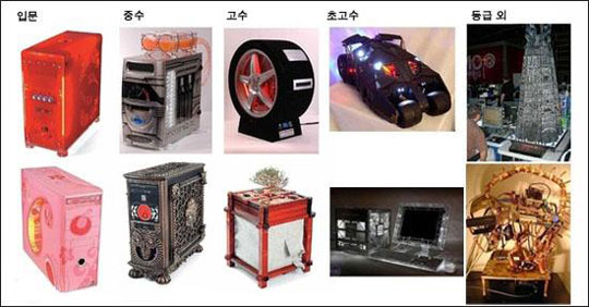 ‘입문’이나 ‘중수’ 수준의 조립 레벨은 일반적인 본체 케이스보다 외관이 화려해지는 정도의 수준이지만 ‘고수’ 단계에 접어들면 외관만으로 컴퓨터라는 것을 알아차리기도 쉽지 않다.
