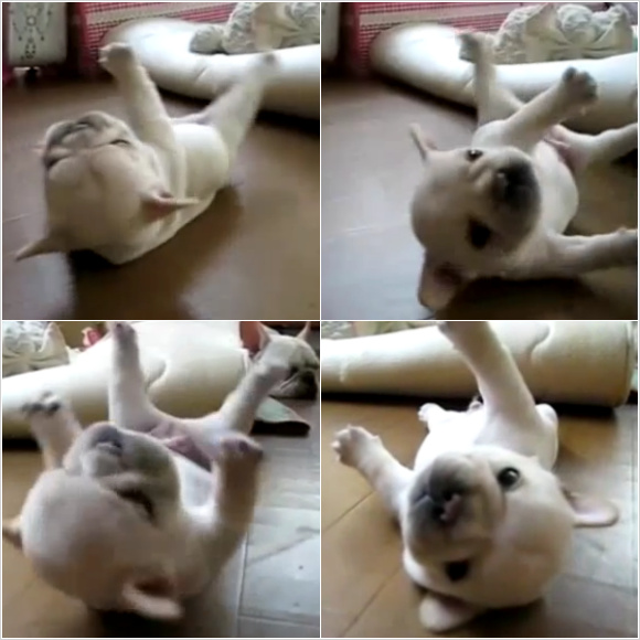 게재된 영상에는 새끼 강아지가 뒤집혀 있어 짧은 다리로 몸을 일으키려고 낑낑거리고 있다.
