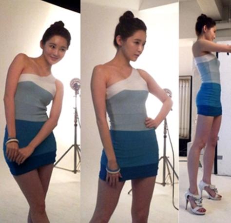 공개된 사진에서 강민경은 몸매 라인이 드러나는 원피스를 입고 촬영 중인 모습이다.