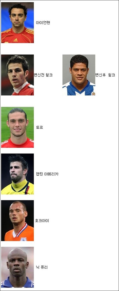 '축구판 어벤져스' 게시물에 누리꾼들은 "진짜 닮았다", "변신 후 헐크 대박이네", "똑같네~"등의 다양한 반응을 보였다. (사진-온라인 커뮤니티)