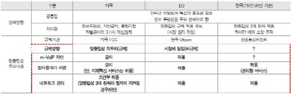최근 카카오의 ‘보이스톡’ 모바일인터넷전화(mVoIP) 서비스에대한 통신사와 카카오의 공방이 치열해지면서 국내 망중립성 정책이 어떻게 결론지어질지 관심이 쏠리고 있다.
