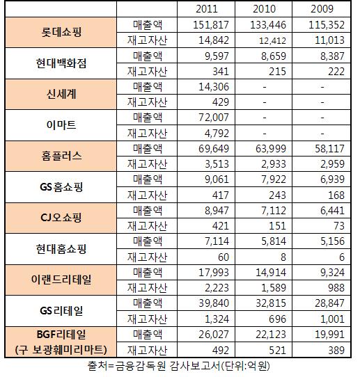 국내 주요 유통업체 가운데 이랜드리테일이 매출규모에 비해 재고부담을 가장 크게 안고 있는 반면 현대홈쇼핑은 재고부담이 가장 낮은 것으로 나타났다.