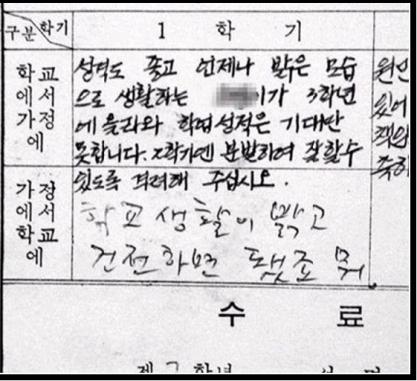 쿨한 학부모님 게시물은 학교에서 받은 가정통신문으로 내용에는 학교 선생님이 학생에 대해‘성격도 좋고 언제나 밝은 모습으로 생활하는 ○○이가 3학년에 올라와 학업성적은 기대만 못합니다. 2학기에는 분발하여 잘할 수 있도록 격려해주십시오’라고 적혀있다.