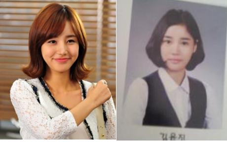 윤진이의 본명인 김윤진이 적혀 있는 졸업앨범 증명사진에서 단정하게 교복을 차려입은 그는 큰 눈, 오뚝한 코, 앵두 같은 입술 등 지금과 크게 다르지 않은 서구적인 미모를 뽐내고 있다. 볼륨을어 고풍스러운 느낌이 풍기는 단발머리와 잡티 하나 없는 피부, 온화한 미소가 어우러져 부잣집 공주님 같은 분위기를 연출했다