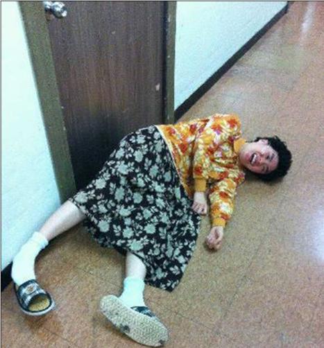 특히 박지선은 KBS 2TV '개그콘서트-불편한 진실'에 등장하는 의상과 가발을 착용한 채 바닥에 널브러져 있다.