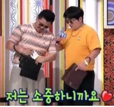 이날 MC 장윤정은 형돈이와 대준이 가방을 가리키며 “대체 이 가방 안에는 뭐가 들어있냐”고 물었고 이에 정형돈은 가방을 열며 안경닦이 하나를, 데프콘은 자신의 가방에서 물티슈를 공개해 폭소를 자아냈다.