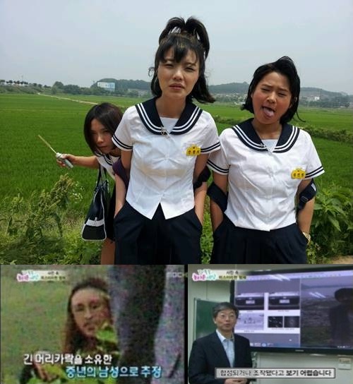 공개된 사진은 최근 MBC ‘TV특종 놀라운세상’에 등장한 ‘제주도 심령사진’을 패러디한 것으로 불량 여고생으로 변신한 안영미와 김신영 뒤편에서 신봉선이 유령처럼 고개를 살며시 내밀고 있어 웃음을 자아낸다.