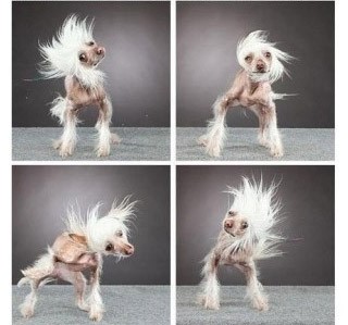 개 몸 털 때 포착 사진들은 카메라로 순간 포착한 사진으로 개가 몸을 털 때 머리와 몸이 어떤 표정과 동작을 보이는지를 잘 표현해주고 있다. 특히 다양한 표정 변화가 압권.