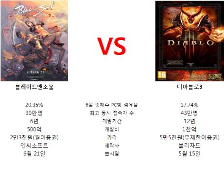 한 달 뒤에 출시된 블소가 지난 주말 한때 디아3의 PC방 점유율을 앞지를 정도로 두 회사의 각축전은 한 치 앞을 예상할 수 없는 혼전으로 치닫는 중이다.