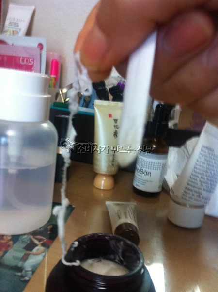 28일 서울 구로구 고척동에 사는 김 모((여,29세)씨에 따르면 그는 지난 6월 초 이니스프리 아이크림을 바르려다 깜짝 놀랐다. 크림을 덜어내는 순간 손가락에 이물이 걸려 걷어 올려보니 휴지뭉치나 실리콘 줄처럼 보이는 10cm가량의 길다란 이물질이 따라 왔다.